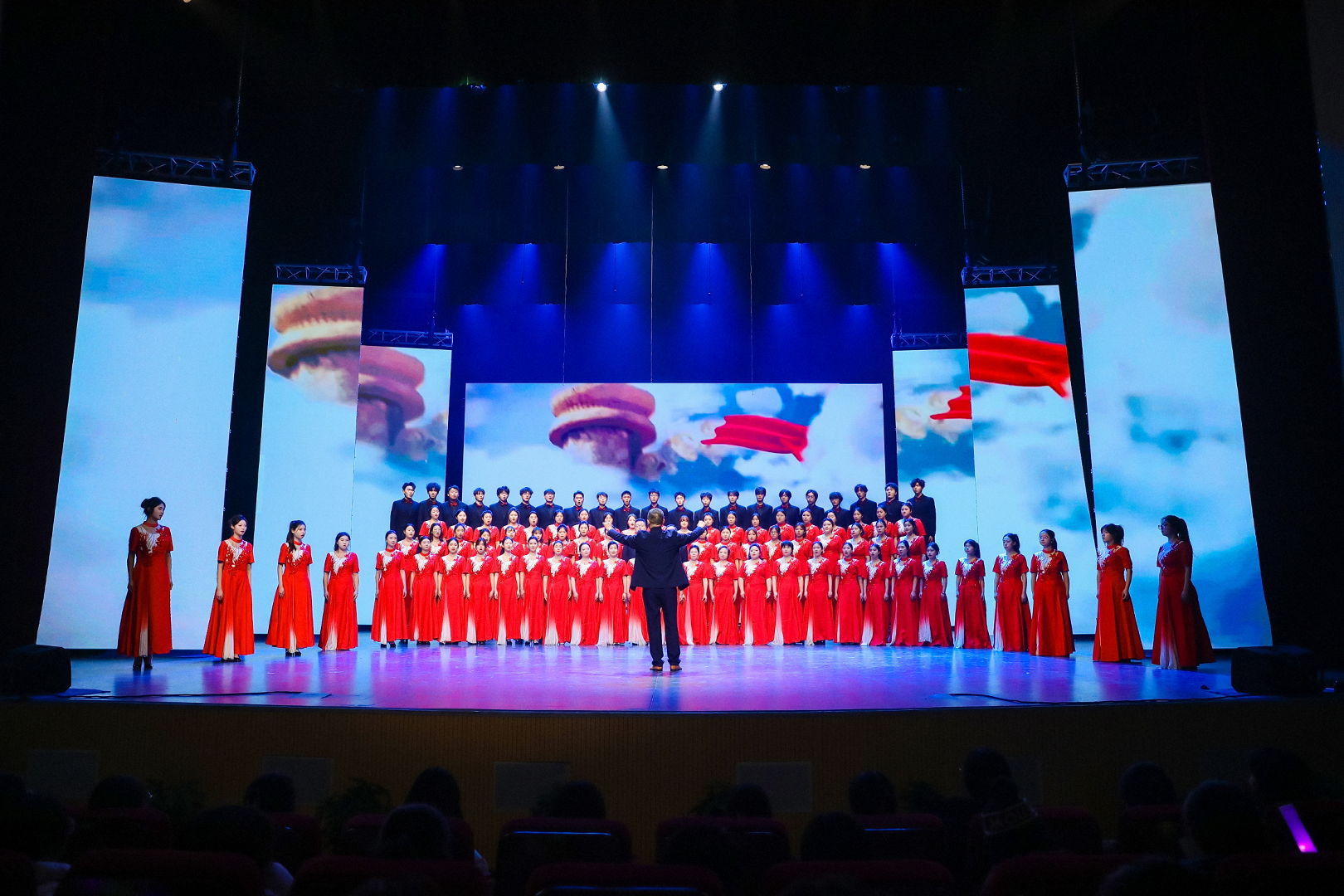 合唱团演绎《我的深情为你守候》。