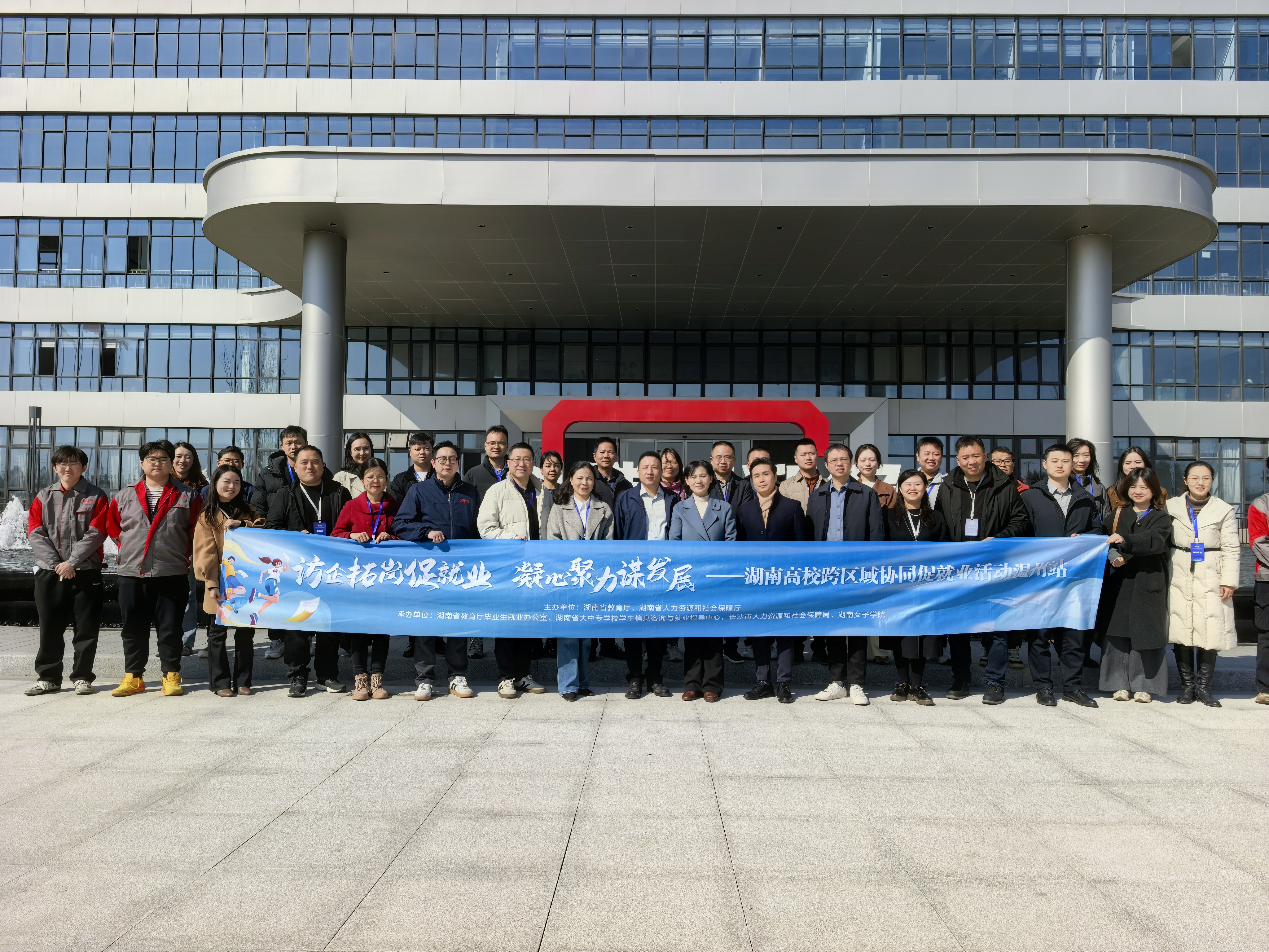 本网讯(招生就业处 王丽华)为深入贯彻国家就业优先战略,推动跨区域人才资源共享与协同发展,1月13日至15日,由best365官网牵头组织、湖南省教育厅与省人力资源和社会保障厅指导的湖南省高校代表团,赴浙江温州成功开展“大湾区、长三角”跨区域协同促就业专项活动。学校党委委员、副校长莫文斌率队,携手湖南工商大学、湖南第一师范学院、南华大学船山学院等16所高校的30名代表,在省教育厅学生处处长周韶峰、省就业指导中心聂亮部长及长沙市人社局相关负责同志的全程指导下,圆满完成了为期三天的访企拓岗与政校企对接工作。