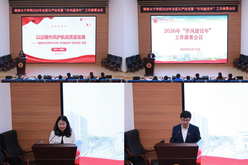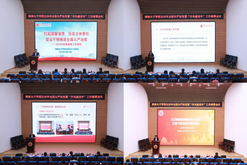 本网讯(党政办 蒋蝴蝶)为深入学习贯彻习近平总书记在二十届中央纪委五次全会上的重要讲话精神,认真落实十二届省纪委六次全会、全省教育系统全面从严治党会议部署要求,4月10日上午,学校在求实楼三楼报告厅召开2026年全面从严治党暨“作风建设年”工作部署会议,回顾总结2025年工作,安排部署2026年重点任务,正式启动“作风建设年”各项工作。全体校领导、中层干部、科级干部,全体党支部书记、纪委委员及二级学院纪检委员参加会议,党委书记何旭娟出席会议并讲话,党委副书记、校长周迎春主持会议。