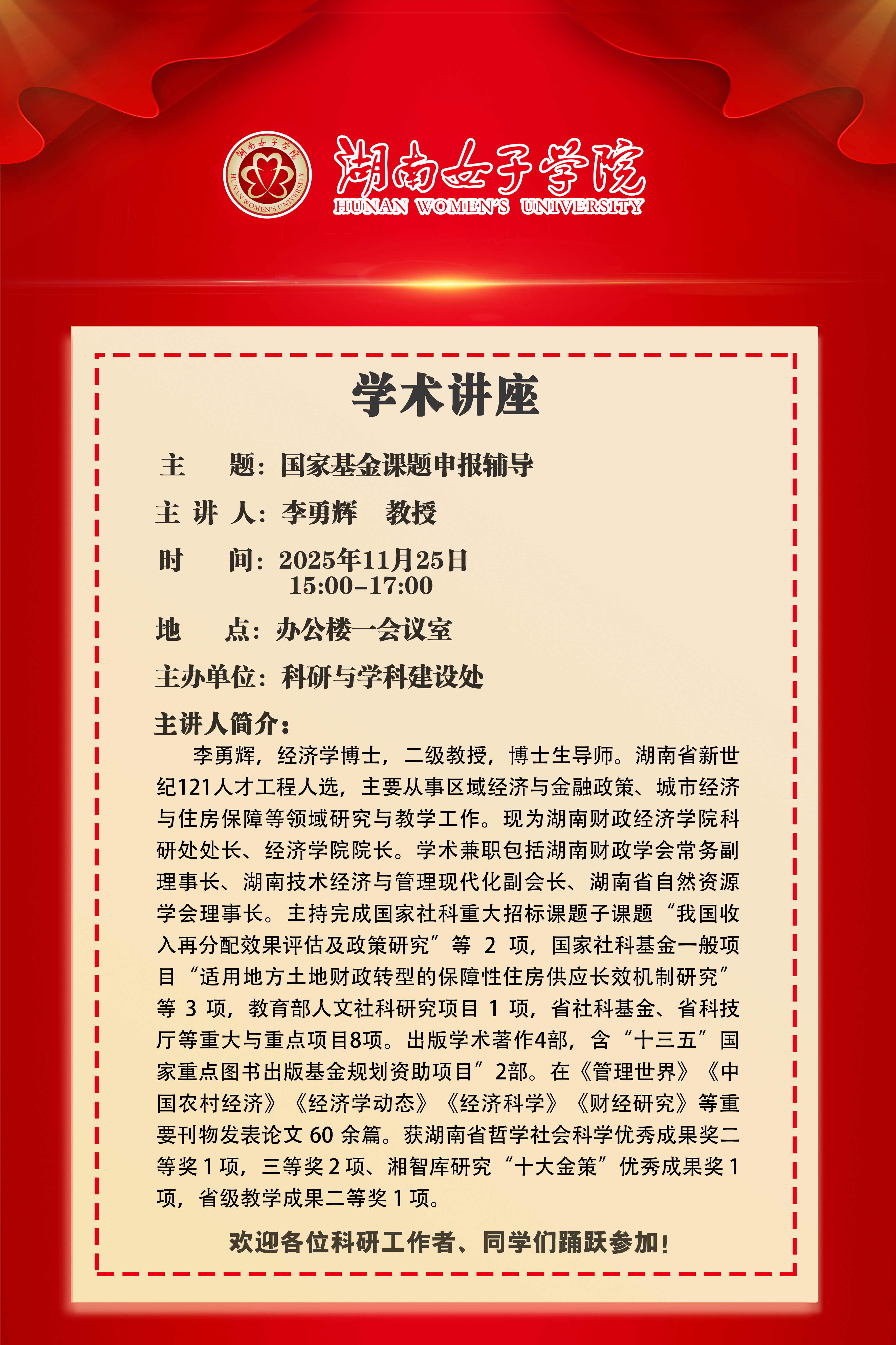 【讲座预告】国家基金课题申报辅导