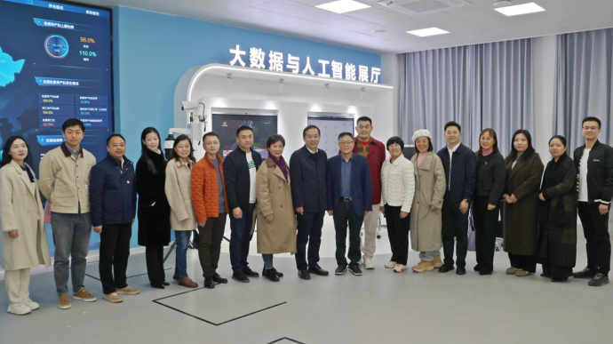 会后与会人员调研了学校女书文化研究基地、信息科学与工程学院大数据与人工智能展厅、文学与传媒学院跨媒介传播研创工作坊。
